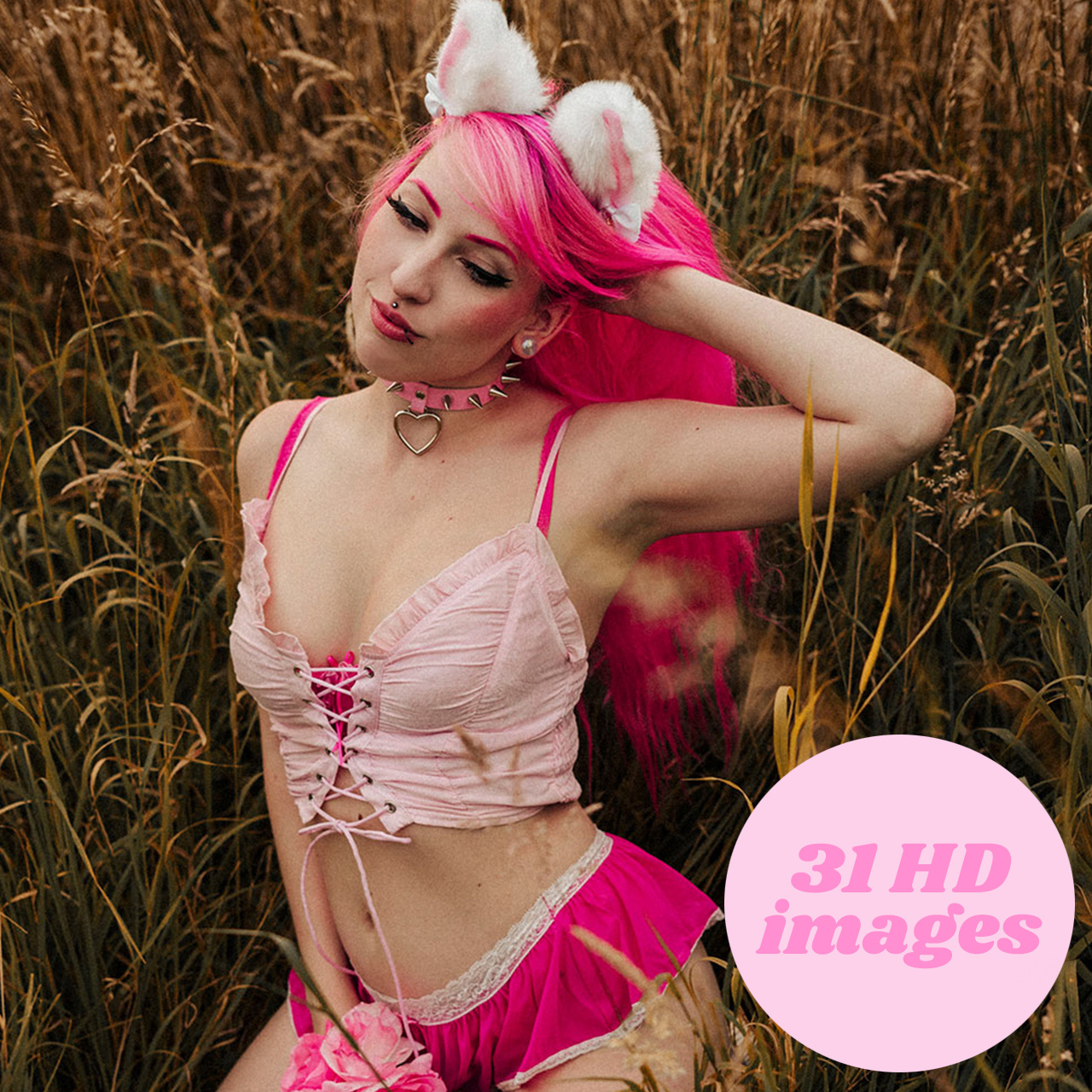 Kitty wants to play in the cornfield… can you handle her? meow The thumbnail is my favorite from the set but you’ll see that the set is pretty spicy. I have taken off my top and my bra is transparent and my boobs are too big for it 😆 So you will get to see a lot, I promise you. Let’s have a fun date in the cornfield… 😏😏